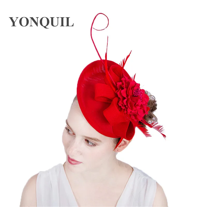 معرض من التجزئة بوتيك 2018 تقليد سيناماي fascinator مع ريشة زهرة القوس fascinator ل سباق الخيل مهرجان وافراح 15 الألوان
