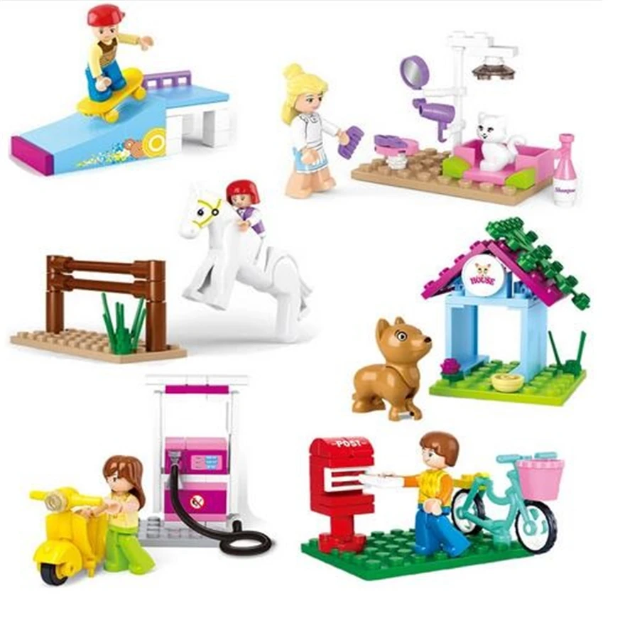 صور من مدينة فتاة الأصدقاء الحيوانات الأليفة الاستمالة الغاز محطة جرو الكلب منزل الحصان سباق نموذج ألعاب مكعبات البناء للأطفال