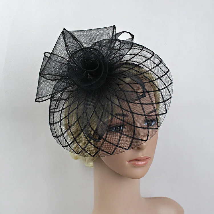 معلومات اضافية مخطط شبكة أزياء hairband زهرة شبكة الأسود العصابة الشعر كليب أسود بيج نساء سباق الخيل حفل الزفاف اكسسوارات للشعر